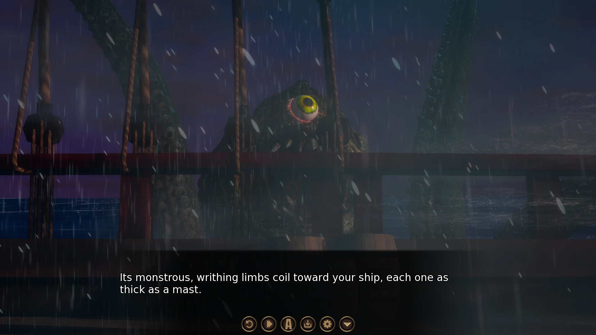 Dynamic environmental system: The intensity of ship rocking increases with the escalation of octopus attacks (e.g., "broken ship's side" requires quick repair).Deep character interaction: The captain and sailors have independent lines (e.g., "Don't just stand there! The ship is sinking!"), driving plot branches.