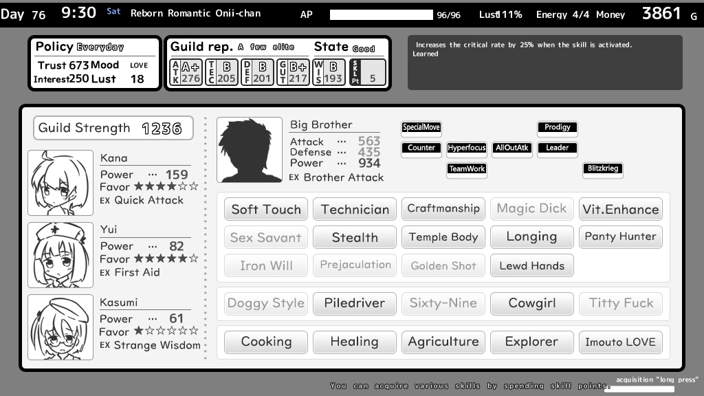 1. A central mechanic involves improving your reputation within the guild by taking on quests, upgrading combat skills, and unlocking new abilities that reflect your character’s growth as a protector and adventurer .2. Simultaneously, players engage in heartfelt interactions with their sister, where dialogue choices, shared activities, and gift-giving directly impact the relationship’s depth and unlock exclusive story arcs .