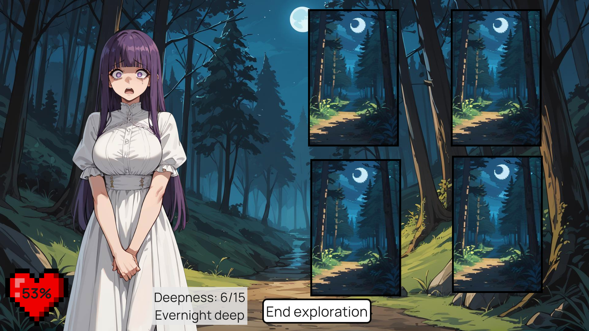 1. A central mechanic involves selecting from four cards that move in unpredictable patterns, each representing a potential path or action within the Evernight. Players must rely on accumulated experience to identify the correct card, with mistakes raising the recruits' stress levels and influencing outcomes .2. Stress management is crucial, as each recruit has a unique fear threshold displayed through visible indicators. Letting stress peak causes fainting, forcing an early retreat and reducing training efficiency, while successful management unlocks new dialogue options and trust-based events .